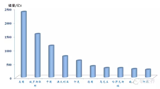世界煤炭剩余探明储量排名前10位的国家