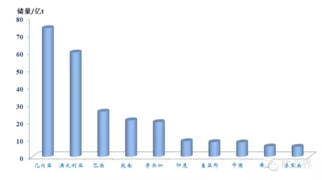 世界铝土矿储量排名前10位的国家