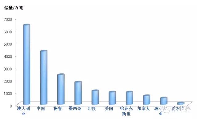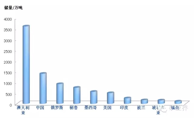 世界已查明铅储量为8900万t,储量较多的国家有澳大利亚、中国、俄罗斯、秘鲁、墨西哥和美国6国,合计占世界铅储量的86.9%,其他储量较多的国家还有印度、波兰、玻利维亚和瑞典等。按目前世界铅矿山产量估算,现有铅储量保证年限不到20年。