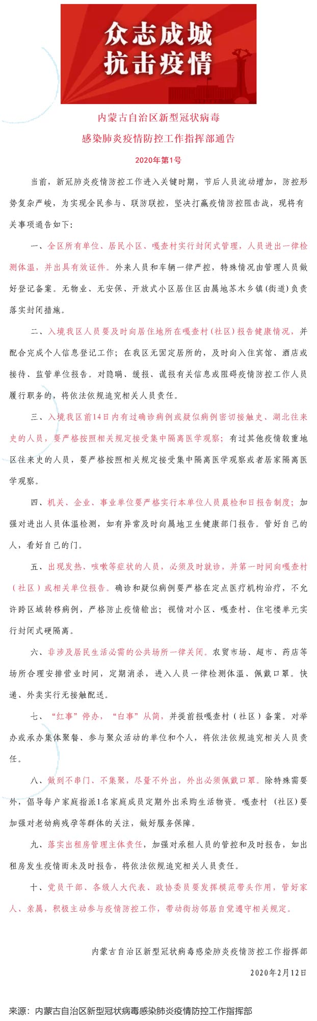 按照自治区疫情防控指挥部通告(2020年第1号)要求,现决定对两级公司实行封闭式管理,具体要求通知如下: